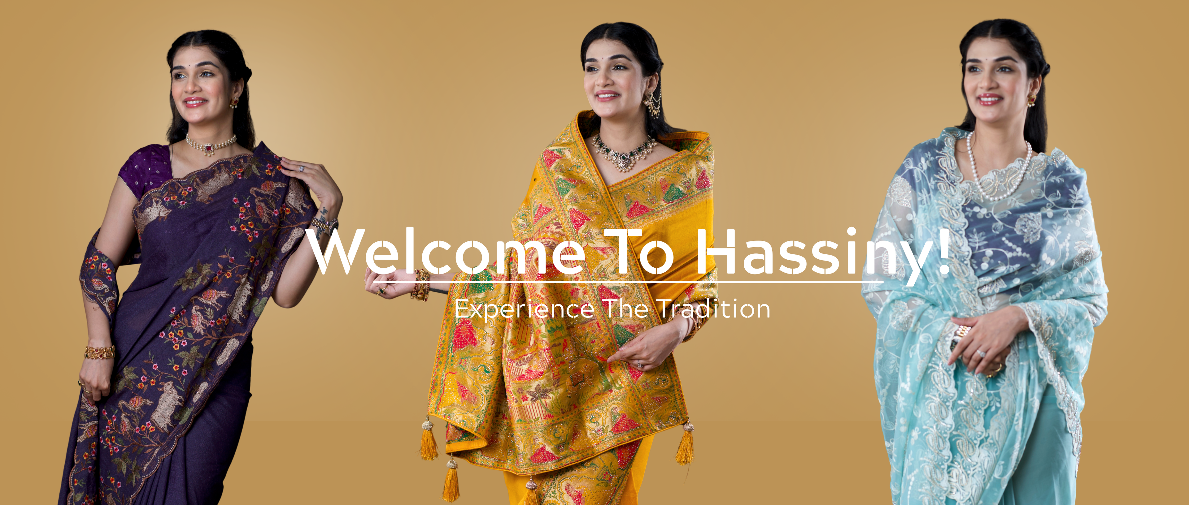At Hassiny, our mission is to add colors in your life by celebrating the beauty of tradition through sarees that blend timeless craftsmanship with modern elegance. We aim to bring grace, confidence, and joy to every woman who drapes a Hassiny creation.