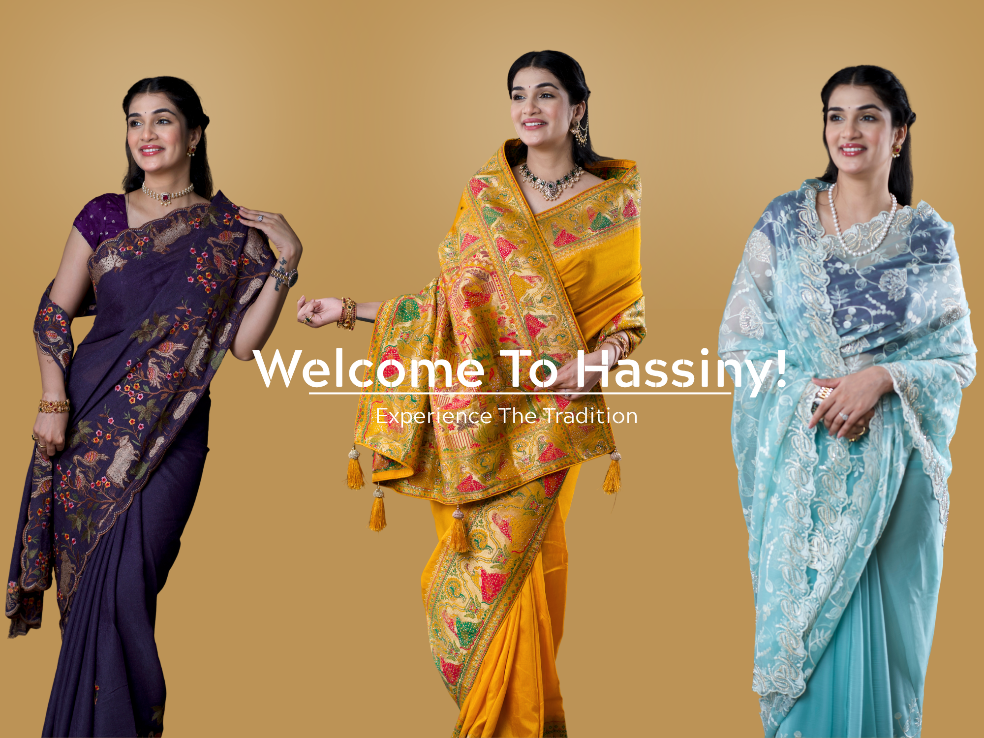 Born from a passion to celebrate the timeless beauty of Indian drapes, Hassiny brings together heritage craftsmanship and modern elegance to create sarees that speak to every woman’s heart.From the delicate charm of daily wear sarees that brighten everyday moments, to the regal touch of function wear sarees designed for your most special occasions — every Hassiny creation is thoughtfully handpicked to add colors in your life.