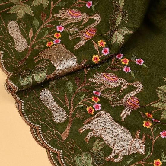 - Design: Nature-inspired embroidery with animal and floral motifs